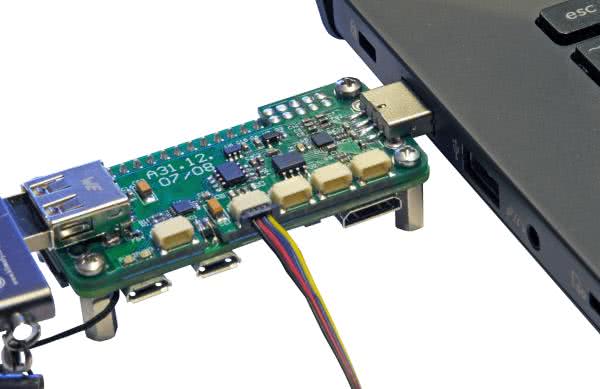 Najważniejszym elementem modułu jest konwerter USB/UART, w którym zastosowano układ FT234X (U5) który służy do obsługi komunikacji terminalu SSH pomiędzy Pi Zero a podłączonym PC, przy wykorzystaniu portu szeregowego, dostępnego na wyprowadzeniach GPIO Raspberry Pi. Dzięki temu mamy komunikację i możliwość zarządzania RPi przez terminal, a jedyne złącze USB pozostaje dostępne dla użytkownika. Nie ma potrzeby użycia droższego RPi ZeroW z wbudowanym Wi-Fi. Moduł pobiera zasilanie z komputera PC, bezpośrednio poprzez wtyk USB. Zasilanie 5 V wraz z sygnałami USB D+/D– z punktów lutowniczych, dostępnych na płytce RPi Zero, doprowadzone są do gniazda USB, umożliwiając podłączenie np. pendrive'a, karty sieciowej, itp.