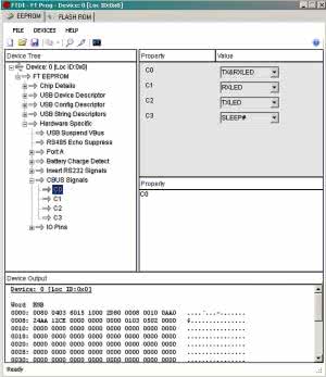 Po zmontowaniu modułu konieczne jest skonfigurowanie FT234 za pomocą oprogramowania FT Prog ze strony FTDI. Po detekcji układu (Scan & Parse F5) wymagana jest zmiana funkcji (Hardware Specyfic\CBUS Signals) pinu C0 na TX&RXLED. Wbudowana LED RTX będzie wtedy sygnalizowała pełną komunikację pomiędzy PC a RPi. Po zmianie ustawień (rysunek 4) należy układ zaprogramować (CTRL+P) i zrestartować port USB (Cycle Ports).