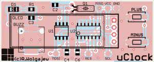 Montaż rozpoczynamy od warstwy TOP, gdzie w pierwszej kolejności montujemy wszelkiego rodzaju półprzewodniki. Następnie przylutowujemy elementy bierne (w tym rezonator kwarcowy) a na końcu przyciski PLUS i MINUS oraz buzzer piezoelektryczny BUZZ. Dalej przechodzimy na warstwę BOTTOM, gdzie podobnie jak poprzednio, montujemy wszelkie elementy bierne, a na końcu koszyk baterii podtrzymującej zasilanie BATT.