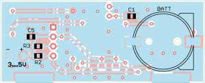 Zasilanie urządzenia podłączamy za pomocą przewodów przylutowanych od strony warstwy BOTTOM w miejscach oznaczonych +/–. Należy pamiętać, by nie przekroczyć dopuszczalnej wartości napięcia zasilającego (5 V), gdyż mogłoby to uszkodzić nasze urządzenie.
