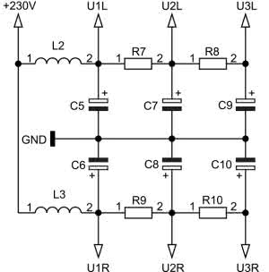 Uzyskane napięcie 230 V jest dodatkowo filtrowane w układzie z rysunku 4.