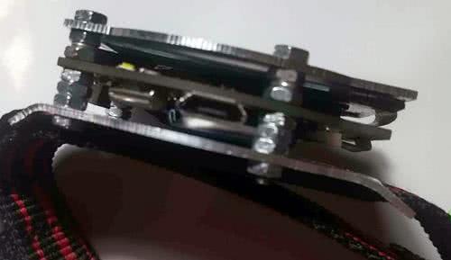 Złożenie obudowy powinno być już formalnością – akumulator należy umieścić pośrodku płytki, a maskownice zakontrować nakrętkami tak, aby nie ścisnąć akumulatora oraz nie uszkodzić matrycy(jest bardzo krucha). Dwie nakrętki od strony wyświetlacza oraz 3 od strony akumulatora (fotografia 4). Jeżeli matryca nie jest ułożona centrycznie, można ją podgrzać suszarką i ustawić na miejscu.