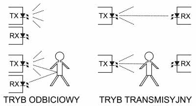 W przeciwieństwie do zwykłych czujników ruchu, wysyła wiązkę światła IR i oczekuje jej odbicia lub przecięcia. Dlatego można wybrać jeden z dwóch trybów pracy: odbiciowy albo transmisyjny. Nadajnik (dioda LED świecąca w podczerwieni) oraz odbiornik, tworzą bramkę optoelektroniczną.