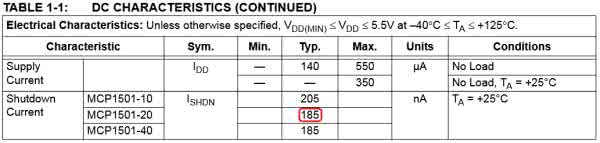 Dodatkowym atutem jest wejście wyłączające, które w tak energooszczędnej aplikacji jest bardzo istotne. Przez większość czasu napięcie referencyjne jest zbędne, wystarczy je włączyć na chwilę przez rozpoczęciem pomiaru przez przetwornik analogowo-cyfrowy i zaraz potem wyłączyć. Wówczas pobór prądu przez ten układ zasadniczo maleje – z około 140…550 µA do niecałych 200 nA (rysunek 3).