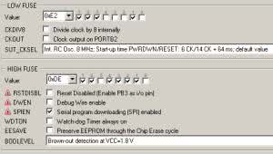 Po zakończeniu montażu, należy ustawić fuse-bity mikrokontrolera Attiny44A na następujące wartości: