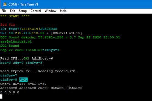 Po pięciu sekundach ukażą się informacje docierające do dekodera, o ile dekoder został zaadresowany (wysyłane są do niego ramki DCC).