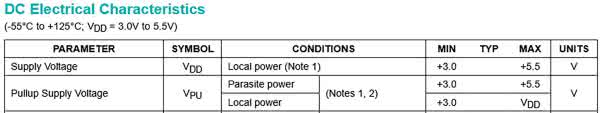 Źródłem zasilania dla tego układu może być bateria typu CR2032, której gniazdo znajduje się na tylnej stronie płytki, albo zewnętrzny zasilacz napięcia stałego o wartości 3 V, podłączany do zacisków złącza J1. Pobór prądu przez układ jest naprawdę niewielki, więc bez problemu da się go zasilić prądem pobranym z niemal dowolnego źródła. Co istotne, wartość tego napięcia nie powinna wyraźnie spadać poniżej tej wartości, ponieważ grozi to brakiem poprawnego działania czujnika temperatury. Producent (Maxim Integrated) deklaruje jego poprawną pracę od napięcia 3 V, co udowadnia rysunek 2.