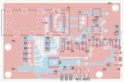Schemat płytki PCB został pokazany na rysunku 8. Montaż jest klasyczny, ale szczególną uwagę należy zwrócić na to, aby równo przylutować piny oraz klatkę dla złącza SFP. Jeśli tego nie dopilnujemy, to możemy mieć problemy z podłączaniem modułów. Zmontowany układ prezentuje fotografia tytułowa.