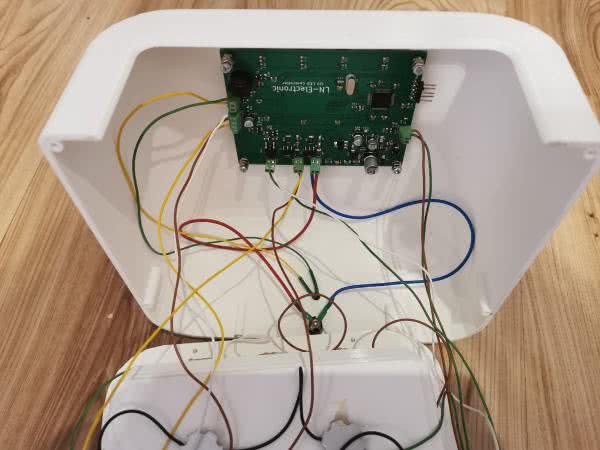 Zewnętrzna część obudowy ma zagłębienie wokół wyświetlacza służące do przyklejenia zewnętrznej płytki z pleksi o grubości 1,5 mm. Część zewnętrzną wraz z podstawą obudowy należy skręcić za pomocą śrubek 3 mm. Na fotografiach 3 i 4 zostały pokazane zmontowane obie części obudowy.