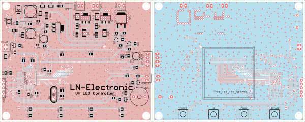 Inną powszechną cechą fabrycznych lamp jest zwykły wyświetlacz segmentowy, za pomocą którego można odczytać czas pozostały do zakończenia naświetlania, przy czym tańsze modele urządzeń w ogóle nie mają takiego wyświetlacza. W opracowanym przeze mnie rozwiązaniu zdecydowałem się zastosować niewielki kolorowy wyświetlacz o rozdzielczości 128×128 pikseli i przekątnej 1,44”. Jest on wyposażony w kontroler ST7735 i 27-wyprowadzeniowe złącze taśmowe, które można lutować. Postanowiłem, że jednym z przycisków będzie można obracać wyświetlaną treść, dzięki temu obraz na wyświetlaczu może być wyświetlany w kierunku klienta lub osoby wykonującej zabieg.