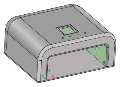 Obudowa do urządzenia została wykonana w technice druku 3D, jej projekt jest pokazany na rysunkach 3 i 4.