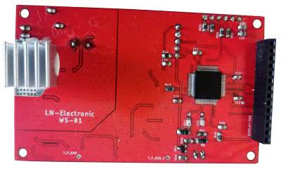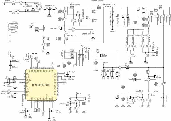 Mikrokontroler sterujący pracą wyświetlacza oraz komunikujący się z czujnikiem to STM32F105RCT6, taktowany rezonatorem zewnętrznym 8 MHz. Kondensatory C10...C13 filtrują zasilanie procesora. Układ RC zbudowany z rezystora R44 oraz kondensatora C16 zapewnia prawidłowy reset procesora po włączeniu zasilania. Z kolei rezystor R43 zapewnia prawidłowe bootowanie mikrokontrolera po włączeniu zasilania. Złącze PRG służy do zaprogramowania oraz debugowania mikrokontrolera za pomocą interfejsu SWD. Złącze DISPLAY-CON służy do podłączenia wyświetlacze TFT 3,2” z kontrolerem ILI9341. Mikrokontroler komunikuje się z wyświetlaczem za pomocą interfejsu SPI. Rezystory R51 oraz R52 mają za zadanie podciągać linie SDA, SCL interfejsu I2C. Do zacisku FOTO należy podłączyć fotodiodę.