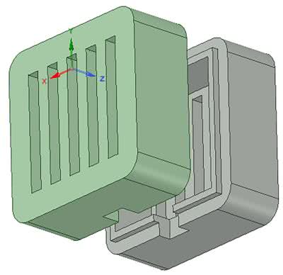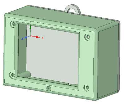 Główna obudowa, która składa się z części frontowej oraz tylnej klapki została pokazana rysunku 4. Płytki PCB należy przymocować do obudowy za pomocą śrubek oraz nakrętek 3 mm. Część tylną oraz przednią obudowy głównej należy połączyć ze sobą również przy pomocy śrubek 3 mm.