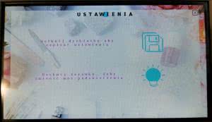 Podmenu USTAWIENIA zostało pokazane na rysunku 15. W tym podmenu mamy możliwość zapisania wszystkich ustawień poprzez dotknięcie ikonki dyskietki. Po dotknięciu przycisku dyskietki po zapisie wszystkich ustawień na wyświetlaczu zostaje uruchomiona animacja ikonki dyskietki. W podmenu, dotykając ikonki żarówki, możemy zmieniać stopień podświetlenia wyświetlacza.