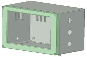 Dla urządzenia zostały zaprojektowane obudowy: dla jednostki sterującej, dla obu lamp oraz obudowa dla silnika prądu stałego wraz z podstawką. Wszystkie obudowy zostały wykonane za pomocą drukarki 3D. W pierwszej kolejności należy wydrukować obudowę jednostki sterującej, która została pokazana na rysunku 6. Składa się z dwóch części – ramki, do której należy przymocować główną płytkę PCB wraz z wyświetlaczem oraz tylnej części w której należy umieścić płytki z przetwornicami umieszczone na aluminiowym radiatorze. Po zmontowaniu obu części obudowy należy skręcić ją śrubkami 3 mm.