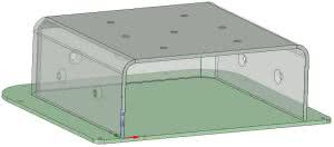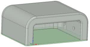 Obudowa silnika składa się z dwóch części. Do głównej części należy wsunąć silnik a następnie można założyć pokrywkę i ją przykleić. Na rysunku 9 został pokazany projekt obudowy wraz z pokrywką, natomiast na rysunku 10 znajduje się projekt podstawki dla silnika.