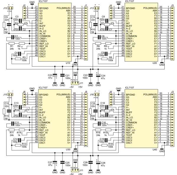 - U10, U20, U30, U40: ICL7107 (DIP40)