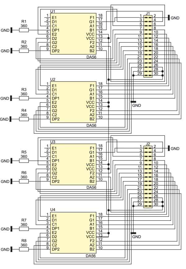 - U3, U4: wyświetlacz 7-seg. żółty AD5624BY(DA56-11YWA) (DIP18)