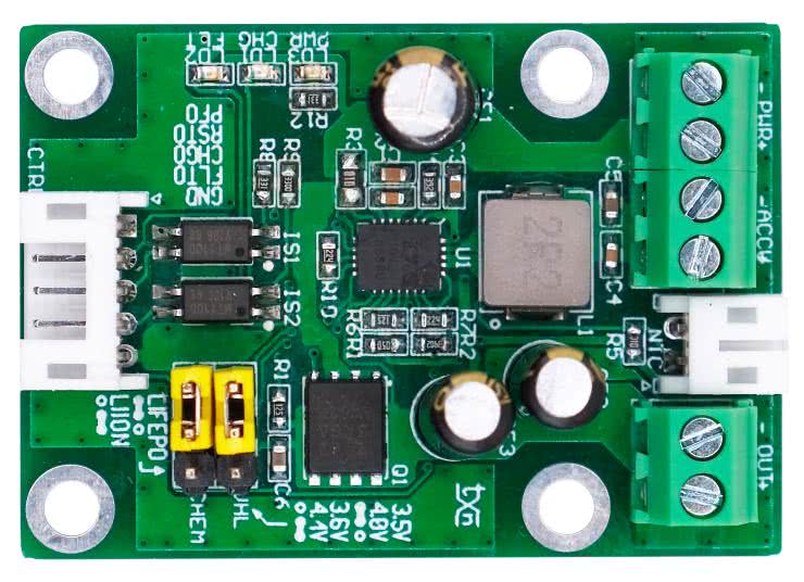 - konfigurowane napięcie ładowania 3,5/3,6 V dla LiFePO4 lub 4,0/4,1 V dla Li-Ion,