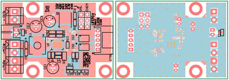 Na płytce pozostawiono miejsce na wlutowanie NTCI, ale to zdecydowanie gorsze rozwiązanie (lepsze niż brak zabezpieczenia termicznego). Termistor zamontowany na płytce wydłuża czas potrzebny do rozpoczęcia ładowania po zakończeniu pracy układu w trybie zasilania z akumulatora, gdyż ze względu na niewielkie wymiary modułu nagrzewa się od elementów przetwornicy. W skrajnym i niezalecanym przypadku można NTC zastąpić rezystorem 10 kΩ, rezygnując z zabezpieczenia termicznego.