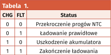 Urządzenie jest wyposażone w sygnalizację stanu pracy: LD3 PWR sygnalizuje obecność napięcia ładowania, LD2 FLT oznacza błąd ładowarki lub akumulatora, LD1 CHG sygnalizuje proces ładowania. Na złącze CTRL wyprowadzone są sygnały stanów ładowarki PFO – komparatora napięcia zasilania, RSTO – komparatora sygnału RESET, CHGO – aktywnego procesu ładowania, FLTO – awarii w obwodach ładowarki/akumulatora. Wszystkie wyjścia są wyjściami OC/OD i wymagają zewnętrznego podciągnięcia do napięcia dodatniego o wartości maksymalnie 5,5 V. Znaczenie stanów CHG, FLT zestawiono w tabeli 1.