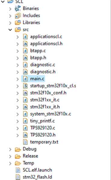 Do załadowania programu do pamięci mikrokontrolera można użyć programu STM32 ST Link Uttility oraz programatora ST Link V2. Jeżeli programowanie przebiegło prawidłowo, to po ponownym załączeniu zasilania diody LED znajdujące się w pobliżu driverów TPS929120 (podłączone do wyjść ERR) są zgaszone. Po programowaniu, w celu sprawdzenia, czy driver działa w trybie STAND ALONE (bez udziału mikrokontrolera), należy wylutować dławik L9, aby zasymulować uszkodzenie mikrokontrolera. W trybie STAND ALONE po załączeniu drivera na wejściu IN1 lub IN2 wszystkie diody LED powinny świecić w kolorze białym, ponieważ wszystkie wyjścia driverów TPS929120 zostają załączone.