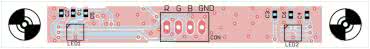 Na rysunku 11 została pokazana płytka z diodami LED RGB. W centralnym punkcie znajdują się pady służące do przylutowania gniazda JST, natomiast po bokach płytki PCB znajdują się otwory montażowe służące do przymocowania płytki do stopni schodów.