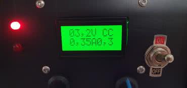 - wyświetlanie aktualnej wartości napięcia wyjściowego i pobieranego z wyjścia prądu na wyświetlaczu LCD,