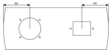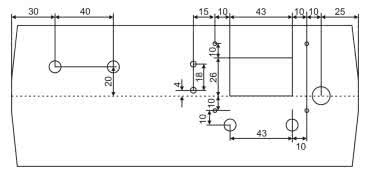 Pod wyświetlaczem, 20 mm poniżej środka wysokości płyty czołowej, są dwa otwory na potencjometry, każdy o średnicy 8 mm. Z kolei zaciski wyjściowe zostały umieszczone 30 mm i 70 mm od lewej krawędzi płyty czołowej, 20 mm nad środkiem wysokości tej płyty.