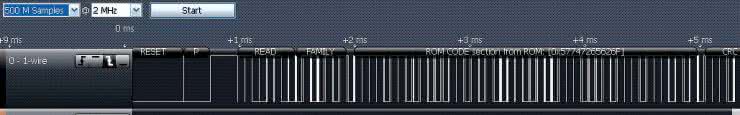Jako ciekawostkę, na rysunku 8 pokazano rzeczywiste przebiegi sygnałów sterujących magistrali 1-Wire dla przypadku rozkazu READ_ROM wysłanego do naszego urządzenia DS18SW20.