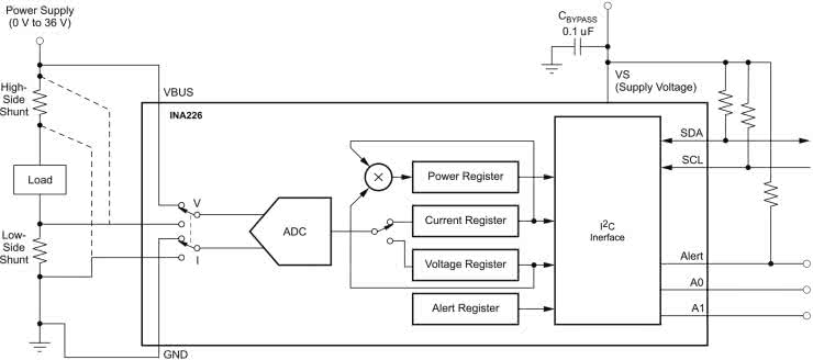 Układ INA226, produkcji firmy Texas Instruments, jest specjalizowanym, bardzo dokładnym, 16-bitowym, różnicowym przetwornikiem pomiarowym ADC przeznaczonym do zastosowania w układach pomiaru prądu i mocy z użyciem bocznika rezystancyjnego. Układ ten wyróżnia się następującymi, wybranymi cechami użytkowymi: