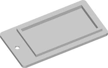 Wygląd 3D klapki (od wewnętrznej strony obudowy) stanowiącej drugi element obudowy pokazano rysunku 10. Z kolei rysunku 11 pokazano wygląd wspomnianej obudowy z zaznaczeniem wymiarów kluczowych krawędzi.