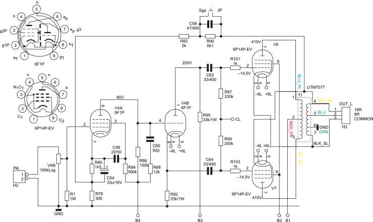 - Lampa 6P14P-EV (2 sztuki dla jednego kanału, lecz dobierane czwórkami – kwadry, dla obu kanałów)