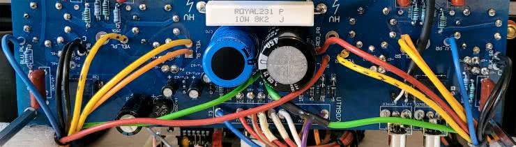 Po upewnieniu się, że wzmacniacz się nie wzbudza z powodu wadliwego montażu i po ustawieniu biasu, możemy podłączyć kolumny głośnikowe. Jeżeli w głośnikach jest słyszalny przydźwięk sieciowy to można go wyeliminować regulując potencjometrami VR12 dla kanału lewego i VR13 dla kanału prawego.