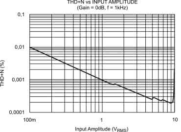 Komentarza wymaga topologia wzmacniacza z użyciem rezystorów R4 i R10. W takim układzie U3B pracuje jako wzmacniacz nieodwracający o wzmocnieniu ustalanym przez rezystory R4 i R10. Jeżeli nie wlutujemy rezystora R10, zewrzemy rezystor R4, to będziemy mieli układ wtórnika. Jednak umieszczenie tych rezystorów na płytce daje możliwość użycia U3B jako stopnia nieodwracającego i wzmacniającego o dużej impedancji wejściowej i małej wyjściowej. Dlaczego tak? Umożliwia to wstępne wzmocnienie sygnału przed PGA2320 i potem tłumienie go rezystorami R13 i R17 na wyjściu. Układ PGA2320 lepiej pracuje (ma mniejsze szumy i zniekształcenia) z dużymi sygnałami wejściowymi - rysunek 7. Katalogowo maksymalny poziom szumów PGA2311 wynosi 4 µVrms, a PGA2320 17,5 µVrms. Żeby uzyskać podobny stosunek sygnał/szum, musimy pracować z większymi amplitudami sygnału.