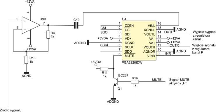 - regulator poziomu zrealizowany na znanym i od wielu lat produkowanym układzie PGA2320 firmy Texas Instruments,