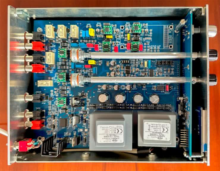 - wszystkie układy analogowe: selektor wejść, kompletny układ regulacji barwy z przełącznikiem bypss, bufor sterujący układem PGA2320 i układ PGA2320;