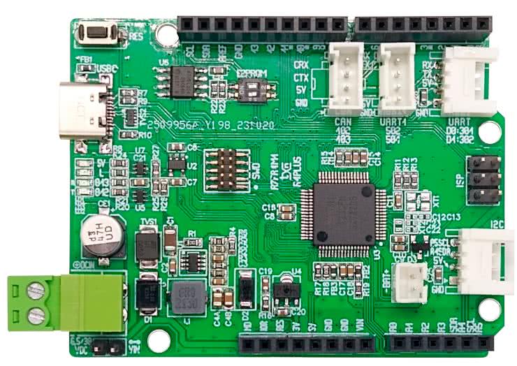 Złącze SWD umożliwia podłączenie zgodnego programatora/debuggera. Dodatkowo na złącza Grove (standard 5 V) wyprowadzono sygnały interfejsów szeregowych UART, CAN, I²C lub odpowiadających im sygnałów cyfrowych i analogowych ułatwiające szybkie prototypowanie.