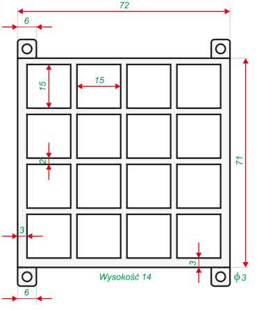 I na sam koniec obiecany "ekstras". Gotowy panel obudowy "przegródek" wykonany w aplikacji do projektowania 3D przez mojego, zawsze niezawodnego, Kolegę Bartłomieja Wawrzyszko. Element ten zaprojektowany został w taki sposób, by po jego przykręceniu do obwodu drukowanego (4 śruby ∅ 3 mm maks.) stanowił kompletne rozwiązanie dozownika leków zbliżone swoim wyglądem do prostych kasetek na leki dostępnych w aptekach czy drogeriach. Co więcej, w bocznych ściankach elementu (trzech z czterech) przygotowano specjalne wcięcia do wsunięcia w nie przezroczystej pleksi o grubości do 1,5 mm i wymiarach 68×80 mm tak, by stanowiła ona pokrywę dozownika uniemożliwiającą wypadnięcie leków ze swoich "przegródek". Prawda, że fajne?
