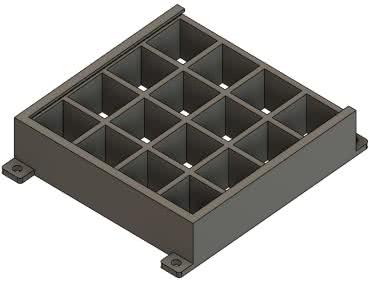 Na rysunku 9 pokazano rysunek techniczny panelu "przegródek" (z zaznaczeniem ważniejszych wymiarów), zaś na rysunku 10 pokazano z kolei model 3D tegoż elementu.