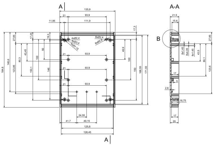 W PCB zostało wykonanych osiem metalizowanych otworów o średnicy 3,2 mm, które można wykorzystać (niekoniecznie wszystkie z nich) do zamocowania płytki drukowanej w obudowie. Otwory montażowe w płytce drukowanej są dokładnie dopasowane do wyniesionych pól montażowych w obudowie Z112A, której kluczowe wymiary można znaleźć na rysunku 3.