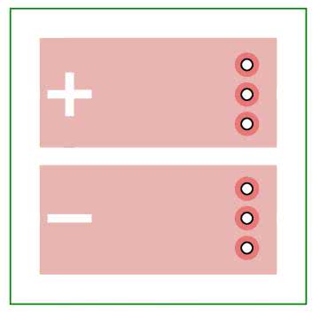 Jak widać, w płycie czołowej obudowy (jej ściance górnej) o grubości 3 mm przewidziano „specjalne” wyżłobienie, w które należy wkleić niewielką płytkę drukowaną o wymiarach 10×10 mm, integrującą w sobie styki pomiarowe (pola miedzi). Do płytki tej, od spodu, należy przylutować przewody, które przeciągnąć trzeba do środka obudowy i podłączyć do styków Cx± na płytce drukowanej urządzenia cMeter, zachowując odpowiednią polaryzację. Na rysunku 7 pokazano wygląd obwodu drukowanego (od strony warstwy TOP) płytki styków pomiarowych, o której mowa powyżej.