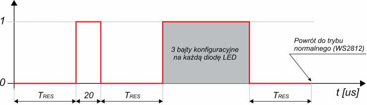 A zatem, by wejść w tryb konfiguracji diod ARGB Gen2, należy na magistralę danych przesłać sekwencję impulsów pokazaną na rysunku 3.