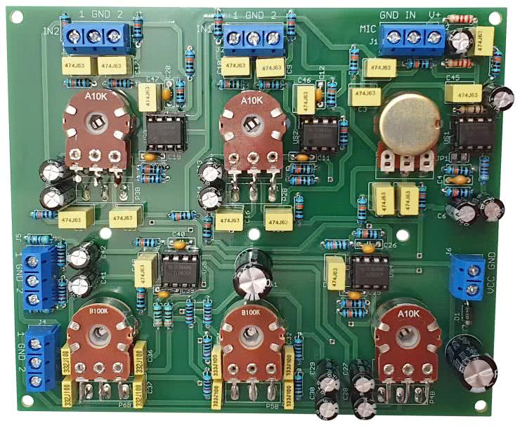 To wszystko dzięki garści popularnych elementów, które można kupić w dosłownie każdym sklepie elektronicznym. Zwarta konstrukcja ułatwia montaż i niweluje konieczność oddzielnego lutowania każdego z kilkudziesięciu cienkich przewodów do potencjometrów. Zasilanie i złącza sygnałowe – to wszystko, czego od świata zewnętrznego potrzebuje ów układ, nic więcej.