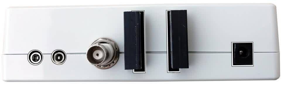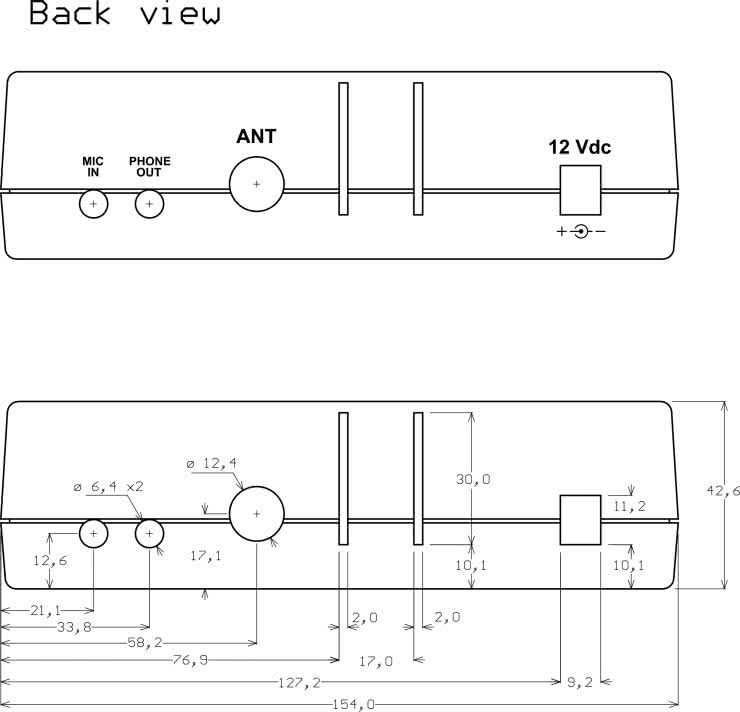 Ścianka tylna zawiera otwory na radiator oraz cztery otwory na gniazda przystosowane do montażu na PCB: antenowe UC1, dwa mini jack (do zestawu multimedialnego: mikrofon elektretowy + słuchawki) i DC/12 V (o takiej średnicy gniazda, aby pasowało do posiadanego zasilacza 12 V).