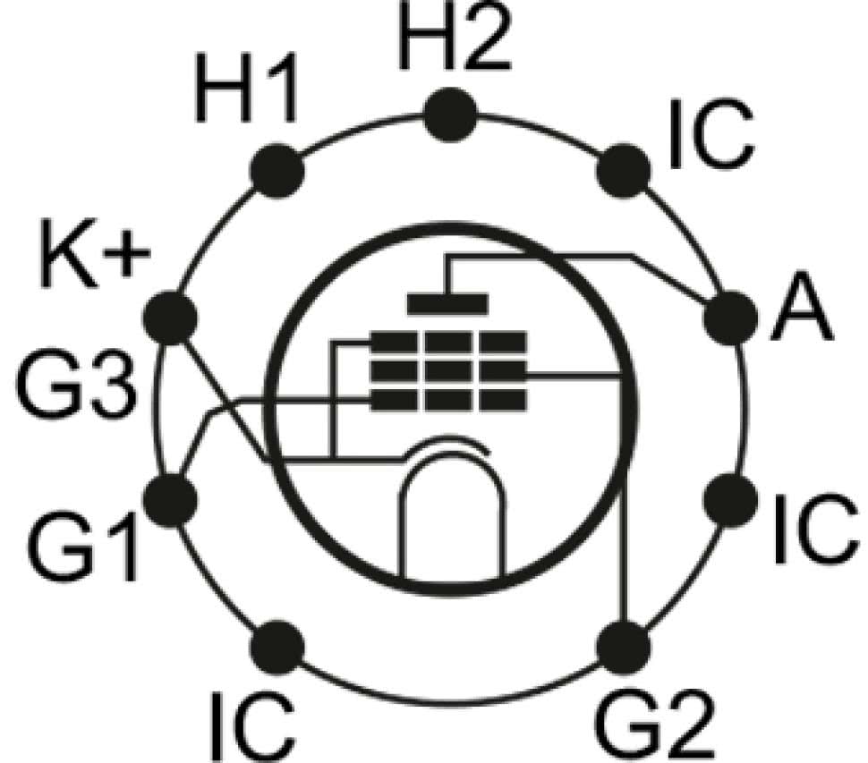 - JA, JH, TGL, TGR: złącze ARK 5 mm