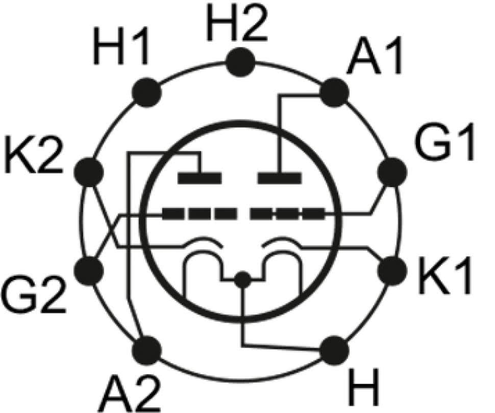 - V1: ECC83 (lampa ECC83 z podstawką noval do druku)