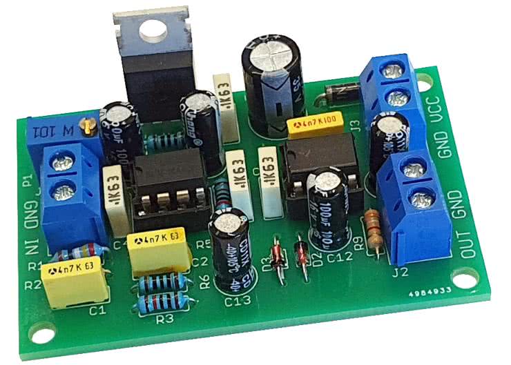 Montaż proponuję przeprowadzić w sposób typowy, czyli rozpoczynając od elementów o najmniejszej wysokości obudowy, w tym wypadku rezystorów i diod półprzewodnikowych. Pod układy scalone w obudowach DIP8 proponuję zastosować podstawki, aby ułatwić ich wymianę w razie uszkodzenia. Zmontowany układ można zobaczyć na fotografii 1.