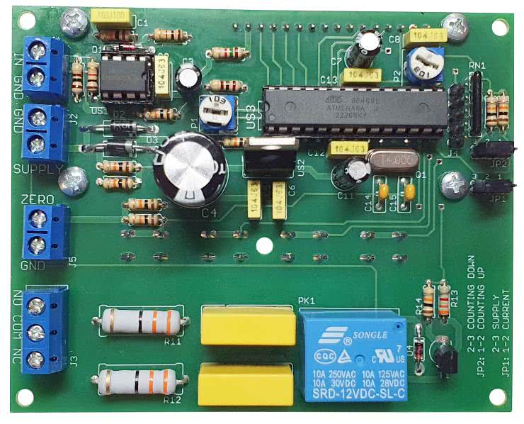- zwarte 2–3 w JP2: liczenie czasu w dół, od wcześniej ustalonej wartości do zera, z załączeniem przekaźnika po dojściu do zera.