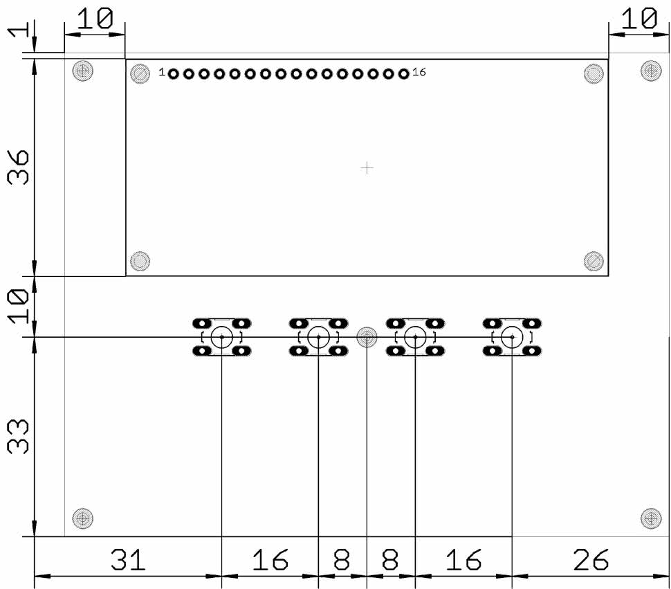 - S1…S4: microswich 6×6 mm, H=13,5 mm